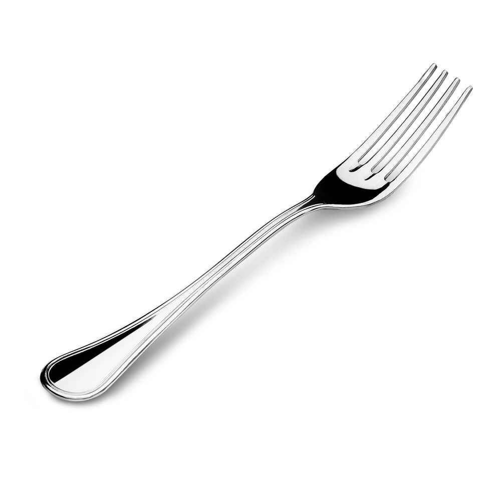 Обеденная вилка или как еще называют – столовая, нужна для вторых блюд. Это привычное всем изделие, имеющее 4 зубца равной длины. Размеры его обычно сравнимы с диаметром подаваемой тарелки. При сервировке её кладут слева от тарелки. Если предусмотрено несколько предметов, то столовый прибор должен быть ближе к тарелке. По размерам, это самая большая вилка.