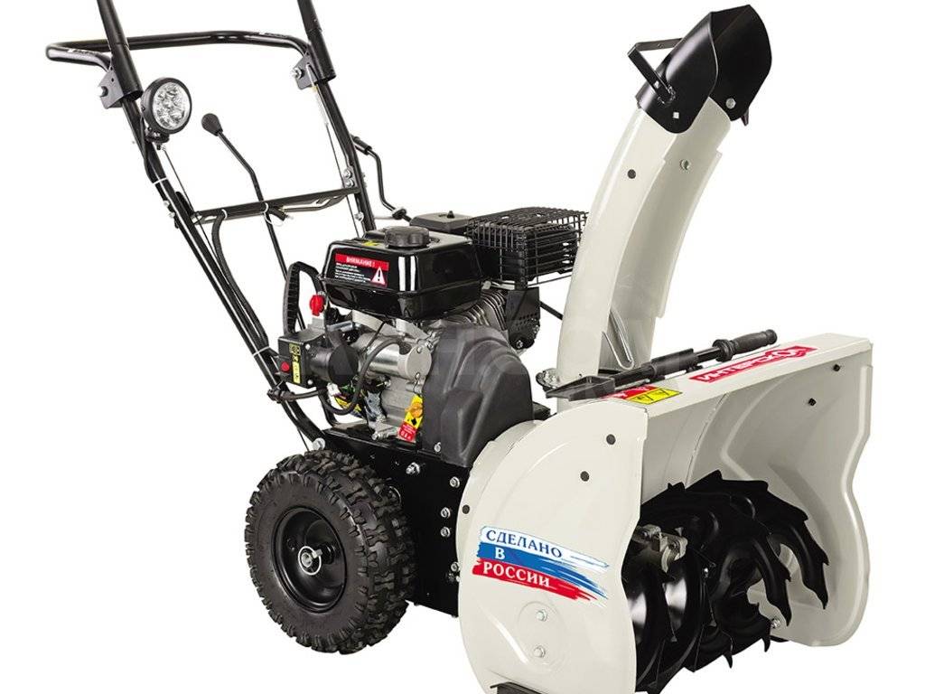 Одна из самых лучших и недорогих моделей российского производства. Эта модель выделяется среди других бюджетных вариантов тем, что имеет отличное техническое оснащение. Большая высота и ширина захвата (0,54 и 0,56 м соответственно) позволяют справиться даже с большими сугробами, причем, без особых проблем. Однако, использовать эти возможности можно лишь с рыхлым снегом. Для слежавшихся сугробов понадобится более мощная техника. Выброс снега осуществляется специальной крыльчаткой через снегопровод на 10-метровое расстояние. Регулирование металлического желоба механическое, выполняется с панели оператора. Высокая эффективность очистки достигается благодаря особой рельефной форме шнека.