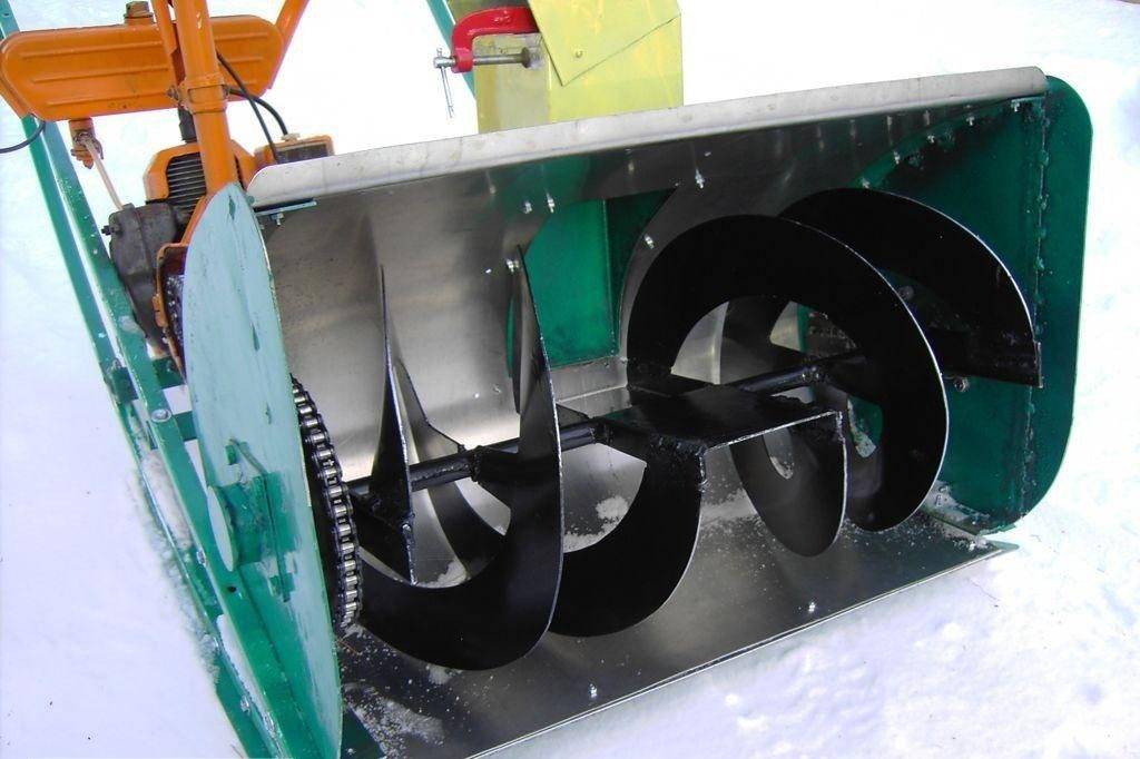 Снегозаборочный ковш и желоб могут быть выполнены из металла или ударопрочного пластика. Детали из полимера более легкие, но на сильном морозе они становятся хрупкими и могут быть повреждены. Преимущество – у комплектующих из металла с антикоррозионным покрытием.