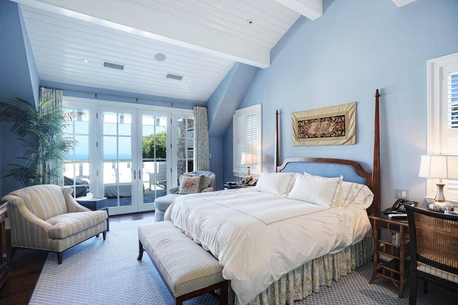 - Часть потолка, под которой стоит кровать, должна быть идеально ровной. Категорически не рекомендуется обустраивать зону для сна под потолком с балками или наклонами.