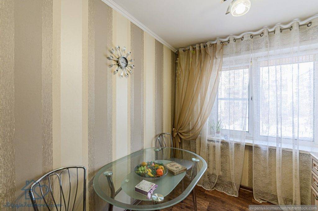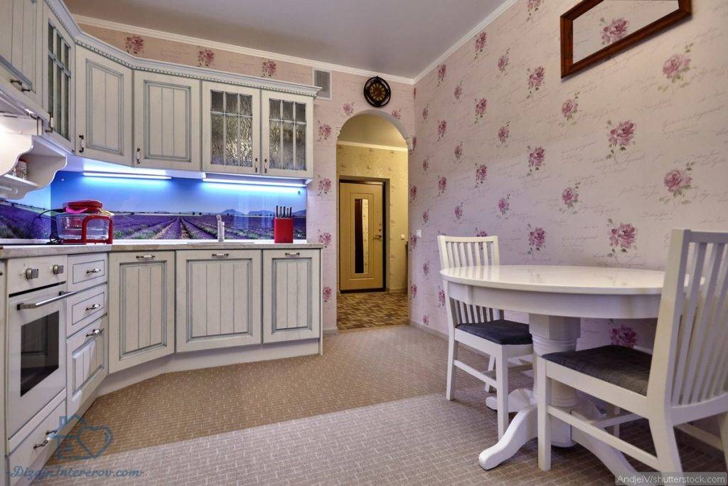Стены маленькой кухни должны быть выполнены в светлых тонах: бежевый, кремовый, молочный и так далее. Как ни парадоксально, но белая кухня не лучший вариант для маленькой площади. Находиться в чисто белой кухне будет неуютно, из-за отсутствия цветов не будет ощущения границ помещения. Белые обои обязательно нужно комбинировать с яркими оттенками, это дополнит интерьер и сделает его более завершенным