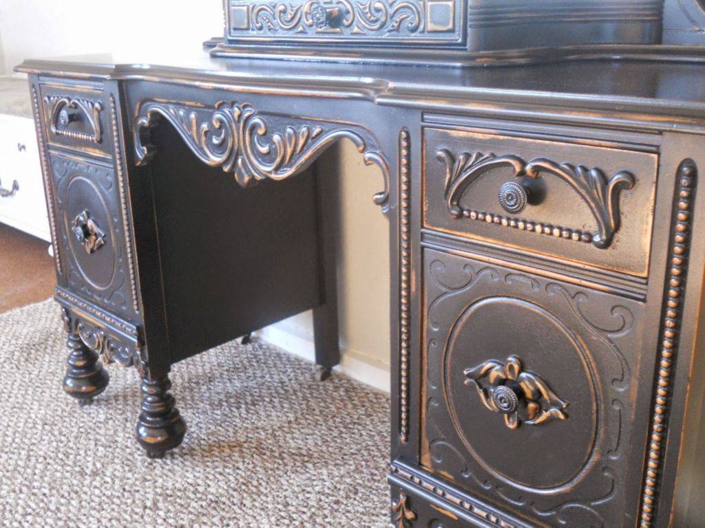 Что бы перекрасить, необходимо снять старое покрытие, обработать дерево шпатлевкой и отшлифовать, затем произвести покраску. На поверхности может присутствовать узор или выпирающая отделка. Эти части окрашивают тонкой кистью. Верхнюю и боковые части красят валиком, при его отсутствии поверхность красят широкой кистью вдоль деревянного спила.