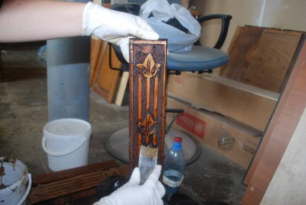 - если на изделии есть трещины и сколы, их замазывают шпатлевкой по дереву. Смесь высыхает не менее суток;