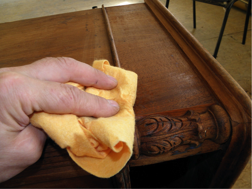 Мебель нужно обтереть сухой тряпкой от пыли и, внимательно осмотреть на наличие дефектов.