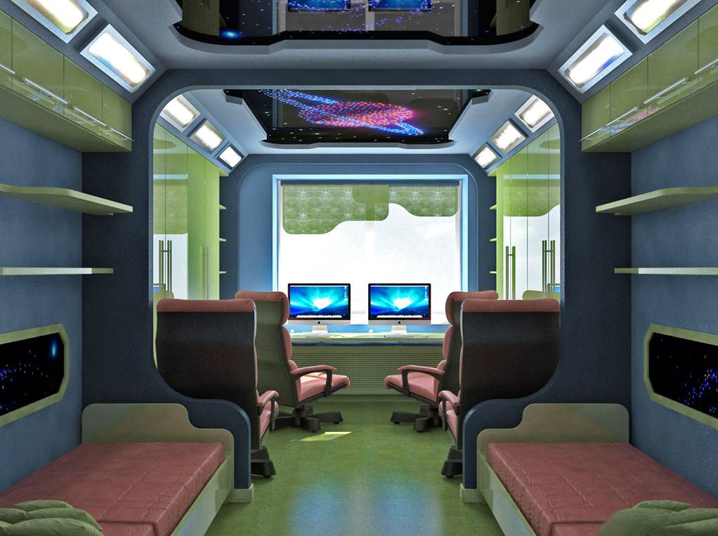 - оформить одну из стен иллюминатором с видом на поверхность загадочной планеты;