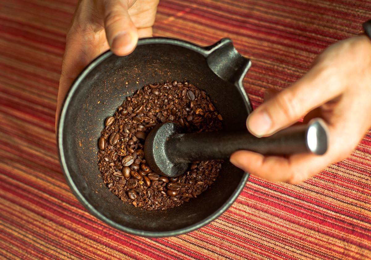 История помола кофейных зерен не сразу началась с привычной всеми ручной кофемолки. Первое устройство для измельчения выглядело как обычная деревянная или металлическая ступа и называлось песта. Это было деревянное приспособление с помощью, которого в небольшой чаше растирались зерна кофе. Процесс этот был достаточно трудоемким и требовал много времени и сил для осуществления. Конечный продукт не стоит сравнивать с привычным для современного человека кофе.