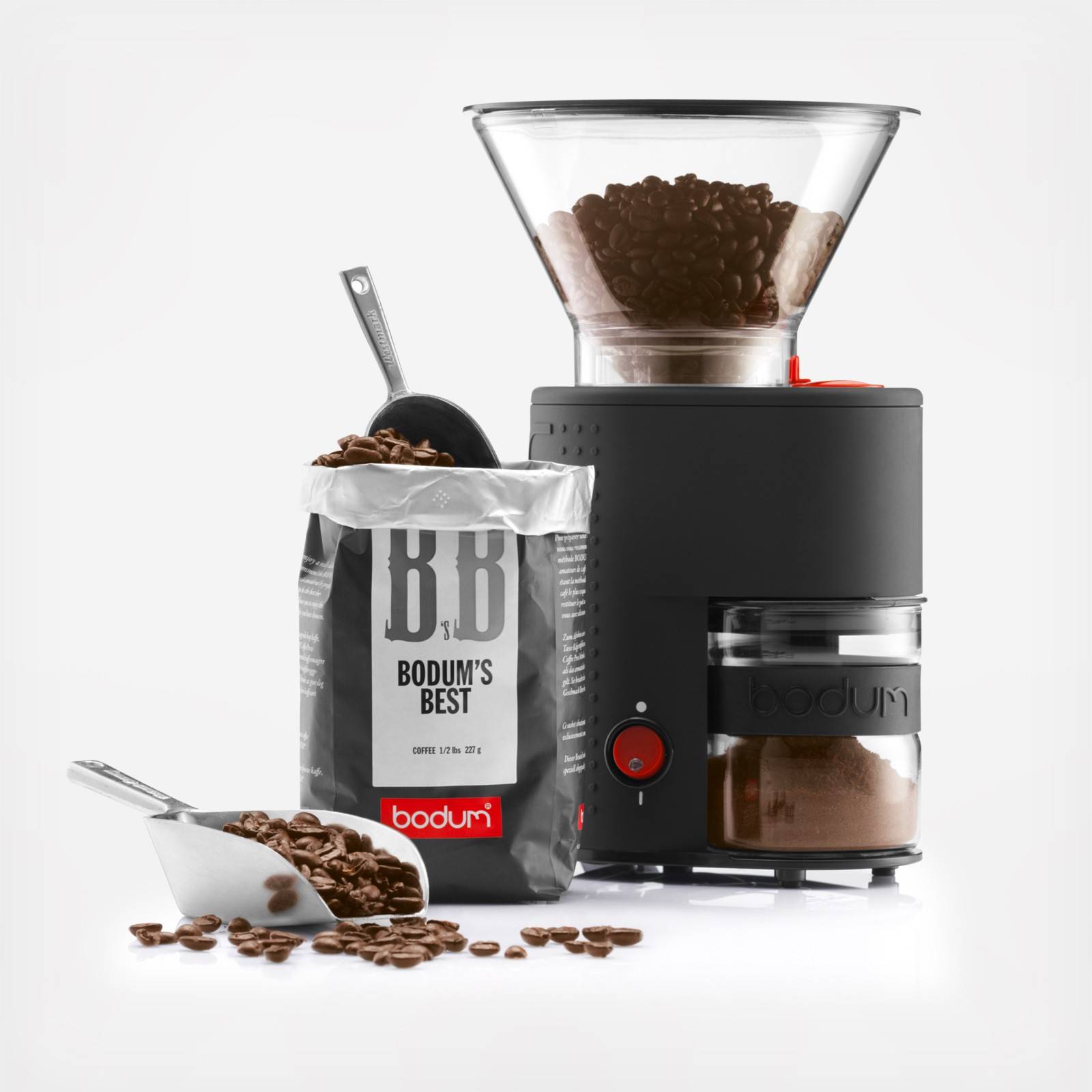 Жерновая кофемолка, с помощью которой удастся перемолоть большое количество зерен. Обладает функцией защиты от случайного включения. Вместимость съемной емкости для зерен составляет 120 грамм. Непрерывно работает до одной минуты. Этого времени хватит, чтобы получить сырье для приготовления двенадцати чашек кофе.