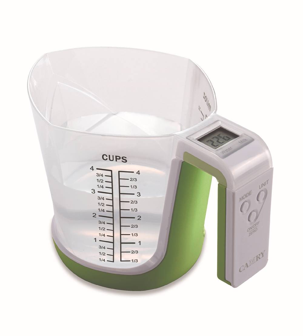 - Измерение объема. Данная функция обычно принадлежит моделям с встроенной чашей. На внутреннюю поверхность чаши нанесена градуировка, соответствующая объему вмещаемой жидкости. Дополнительная возможность – перерасчет из одной единицы измерения в другую. Удобно для домашних кулинаров, кондитеров.
