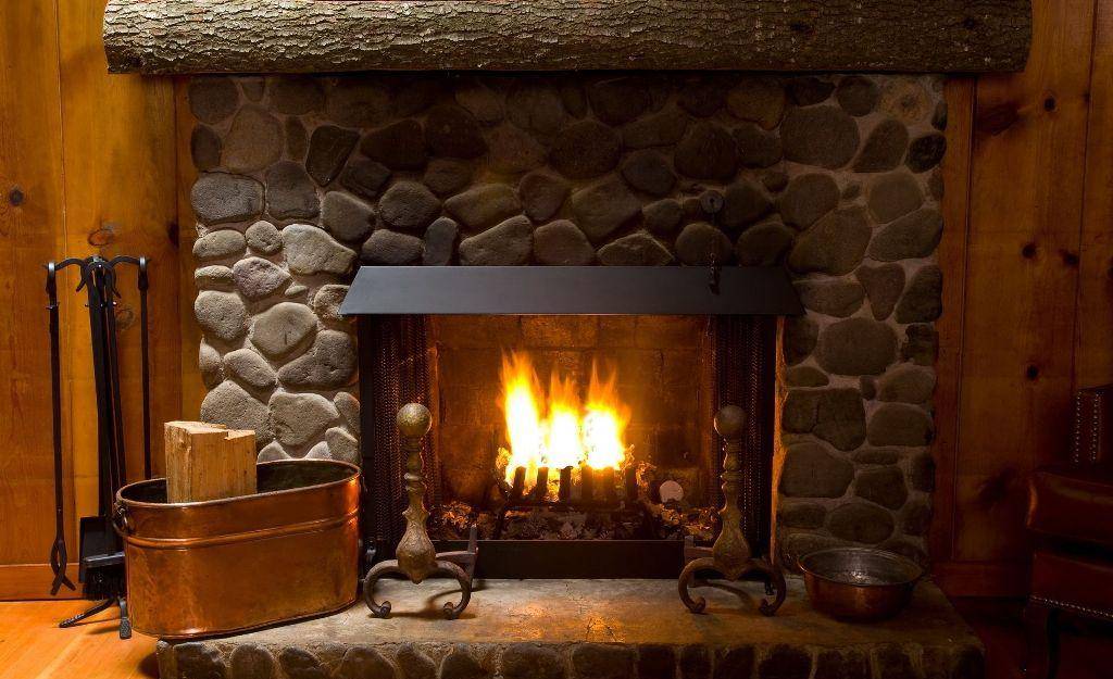 - Одним из желательных элементов является камин. Но камин в таком интерьере не должен выглядеть как современный декоративный элемент, он должен скорее напоминать старинную печь для готовки и отопления дома. Интерьер хорошо дополнят декоративными поделками из веток: вешалки, люстры, держатели для полок, ножки для стульев и столов. Органично впишутся ковры и паласы неярких цветов.