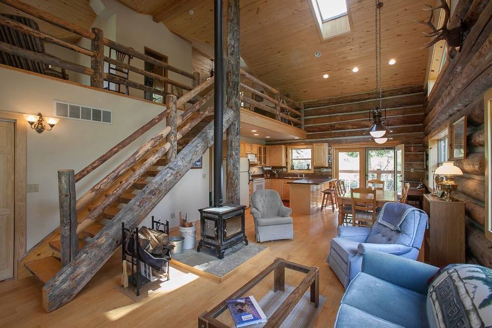 В качестве решения для стен используют доски с декоративными элементами в виде сучков. Последние не должны сливаться со стеной, предпочтительно сделать их на несколько тонов светлее. Оформлять потолок следует из аналогичных досок. В качестве напольного покрытия выступит брашированный паркет или широкие доски. В целях сохранности дерево подвергают легкой шлифовке и покрывают лаком.