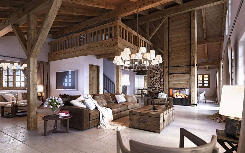 Данному стилю часто отдают предпочтение владельцы загородной недвижимости, расположенной за чертой города, потому что его проще воссоздать на больших площадях.