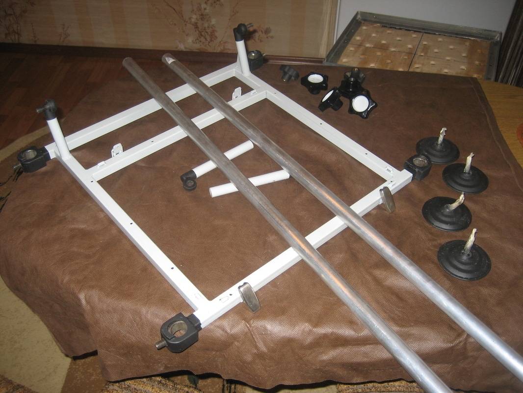Для фидерного кресла также можно легко смастерить самодельный обвес. Для этого понадобятся пластиковые водопроводные фитинги, крепежи для труб и сами алюминиевые трубки.
