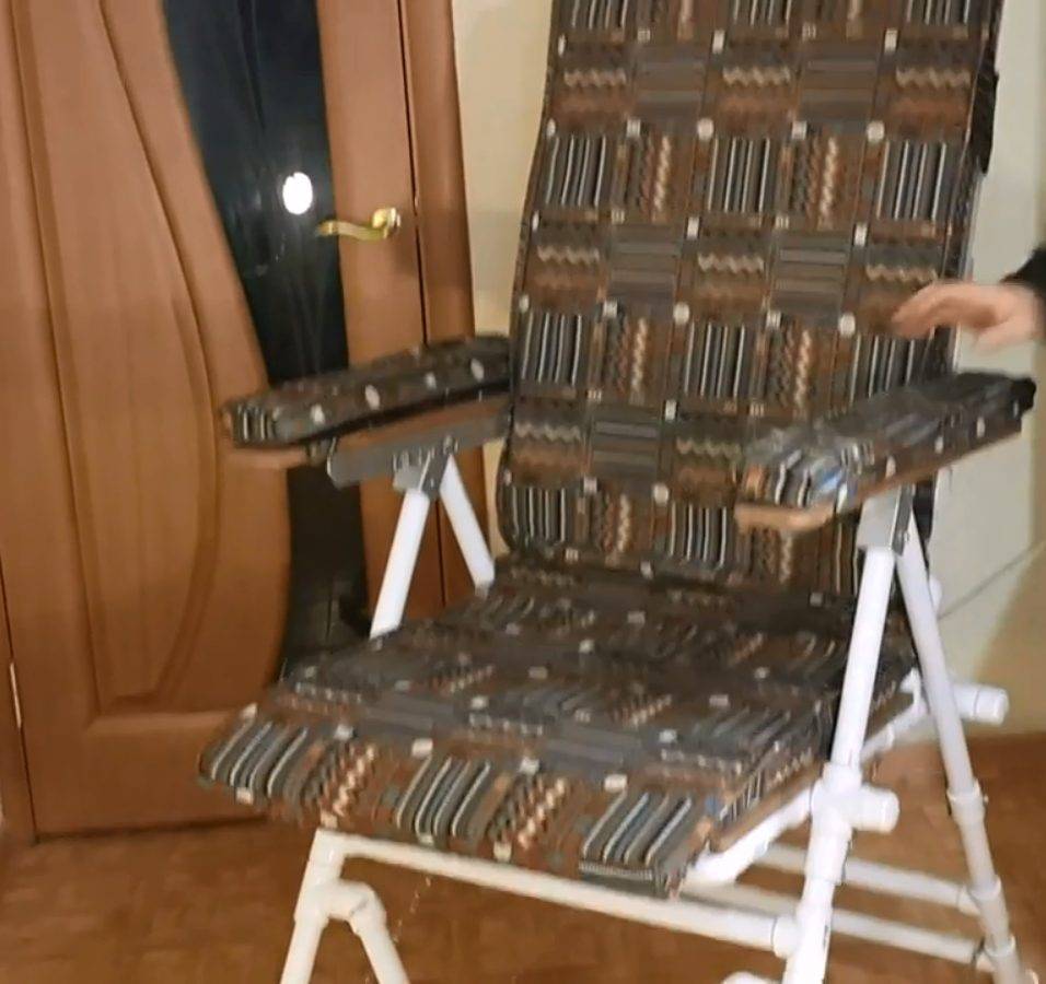 Для прочности конструкции в местах крепления фитингами можно использовать клей или сварку. Такой раскладной стул для рыбалки будет долго служить благодаря материалу, из которого изготовлен, его будет легко переносить, кресло не будет занимать много места в рюкзаке.