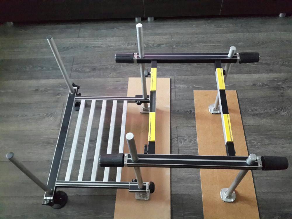 - Опоры. В современных конструкциях их количество составляет 4, 6 и 8 штук. Все ножки регулируются по своей длине, фиксируясь особыми креплениями. Диаметр их зависит от веса: чем он больше, тем больше диаметр опоры. Материалы, из которых создаются ножки платформы – алюминий и сплав.