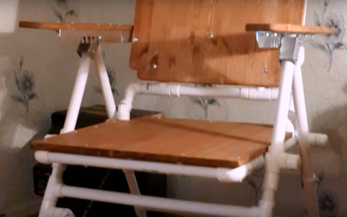 Несмотря на то что пластмасса является нежелательным материалом для создания рыбацкого стула, усиленный вариант — полипропилен, все же подойдет. Для начала создается чертеж с требуемыми размерами. Затем следует приобрести 12 полипропиленовых трубок одной длины, схожего диаметра. Для соединения этих элементов также потребуется паяльник.