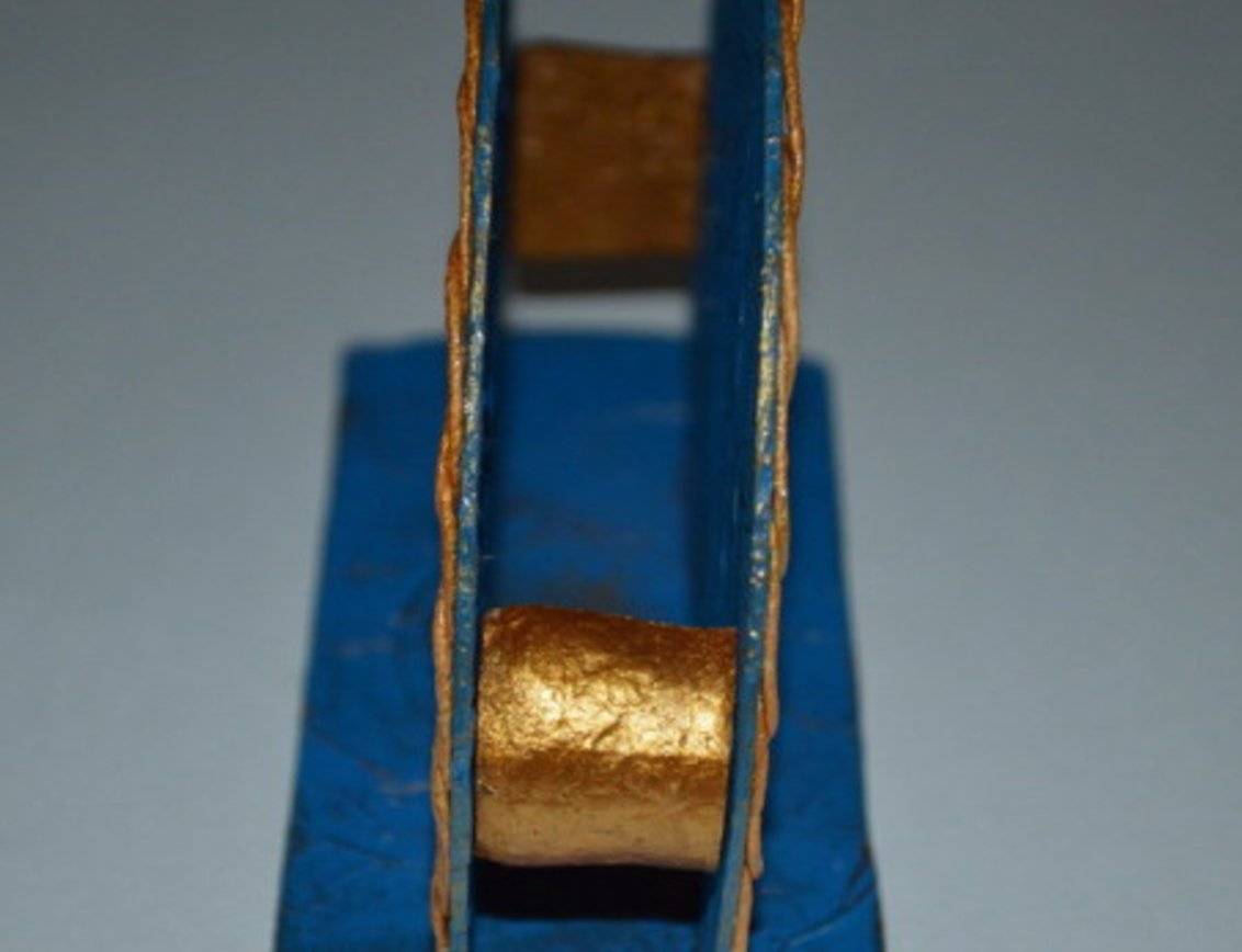 Заключительным этапом декорирования заготовок является их оформление салфеточными жгутиками в стиле пейп-арт. Для этого из салфеток необходимо сформировать тонкие бумажные нити, окрасить их золотой акриловой краской и при помощи лака-клея для декупажа или акрилового лака приклеить к внешней поверхности заготовок.