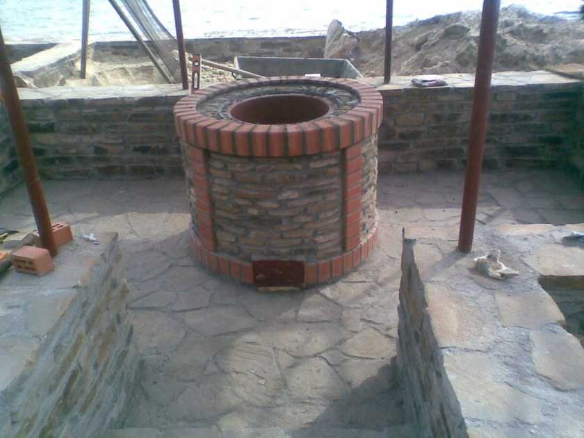 Эту симпатичную конструкцию чаще устанавливают не под открытым небом, а в закрытых беседках. Однако в первом случае он будет служить дополнительным декоративным элементом. Чтобы появилась возможность приготовления блюд, над топкой устанавливают решетку, она служит подставкой для посуды, шампуров, решетки. Такой отопительный прибор можно сделать из камня, кирпича либо из металла, его потом облицовывают.