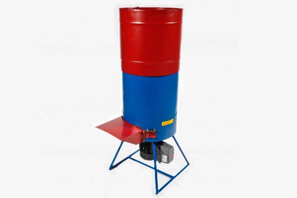 Узел состоит из стальной цилиндрической емкости, внутри которой устанавливаются вращающиеся ножи. С электродвигателем ножи соединяются при помощи специальной оси. При изготовлении следует подумать о безопасности, поэтому рекомендовано оснащать сеноизмельчитель бункером с высокими стенками или предусмотреть крышку, закрывающую его при работе измельчителя.