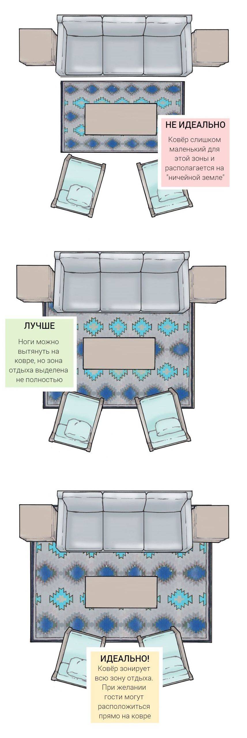 Чтобы рассчитать идеальную величину ковра, следует внять советам стилистов: