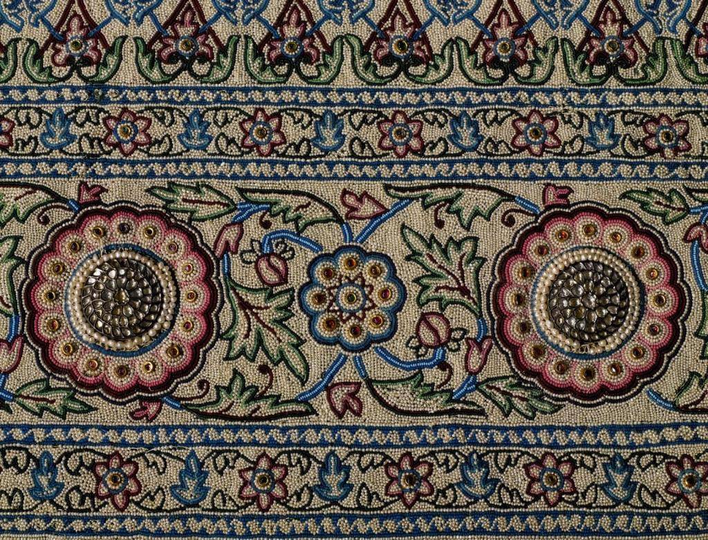Шелковое полотно, украшенное драгоценными камнями, жемчужинами и бисером, изначально предназначалось для украшения гробницы пророка Мухаммеда, однако после смерти заказчика стало достоянием семьи магараджи. Каждый квадратный метр этого произведения искусства украшает около 500 тыс. жемчужин и бусин, а три медальона на полотне и розетки на бордюре инкрустированы бриллиантами в серебряной и золотой оправе.