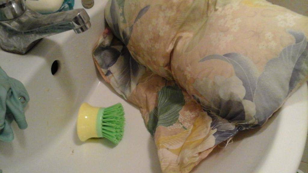 Рассмотрим, как правильно постирать перьевую подушку вручную: