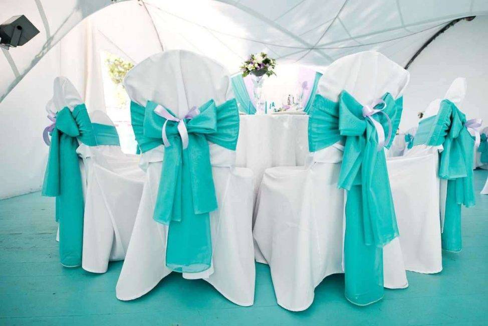 - Стулья должны быть немного выдвинуты, чтобы гостям было легко садиться на них. Оптимальное расстояние – 40-50 см от края. Если это уместно, стулья можно украсить тканью, которая сочетается со скатертью. Если она шьется на заказ, можно сразу об этом позаботиться.
