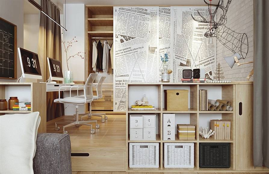 Один предмет может выполнять множество функций. Например, каркас кровати будет прятать и полки, и выдвижные шкафчики, и еще множество полезных ящичков.