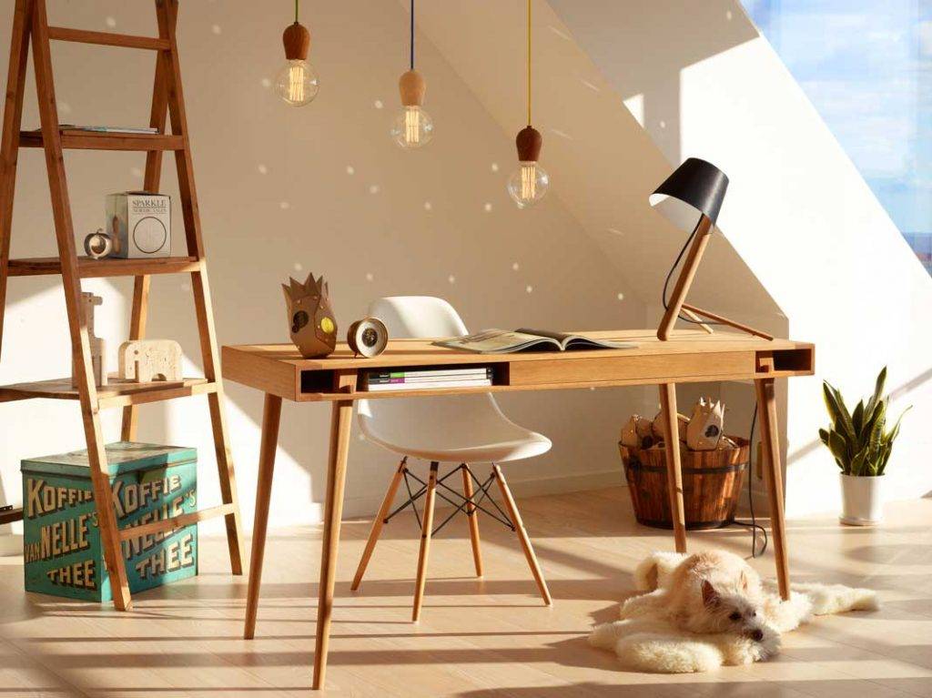 - Дополнительное декоративное освещение. Сканди интерьер — это, в первую очередь, простор и свет. Если нет возможности в полной мере наполнить помещение естественным светом, то используйте как можно больше дополнительных светильников: торшеров, бра, конструкций с точечными светильниками. Это могут быть самые простые по конструкции светильники с использованием дерева, ковки, натурального камня. Но самое интересное, что эти светильники можно использовать в качестве декоративных элементов оформления.