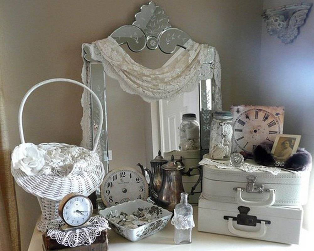 Дополнить оформление винтажного интерьера помогут аксессуары. Это могут быть старинные подсвечники, лампы, часы, статуэтки, шкатулки, рамки для фотографий, настольные зеркала, тряпичные куклы, кружевные салфетки… Непременным атрибутом являются цветы: летом – букет живых цветов, зимой – букет сухоцветов.