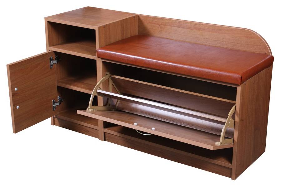 Обувницы могут быть и широкими. Тумбу или самостоятельно изготовить тяжело, поэтому лучше ограничиться простым шкафчиком. Требования к изделию таковы: