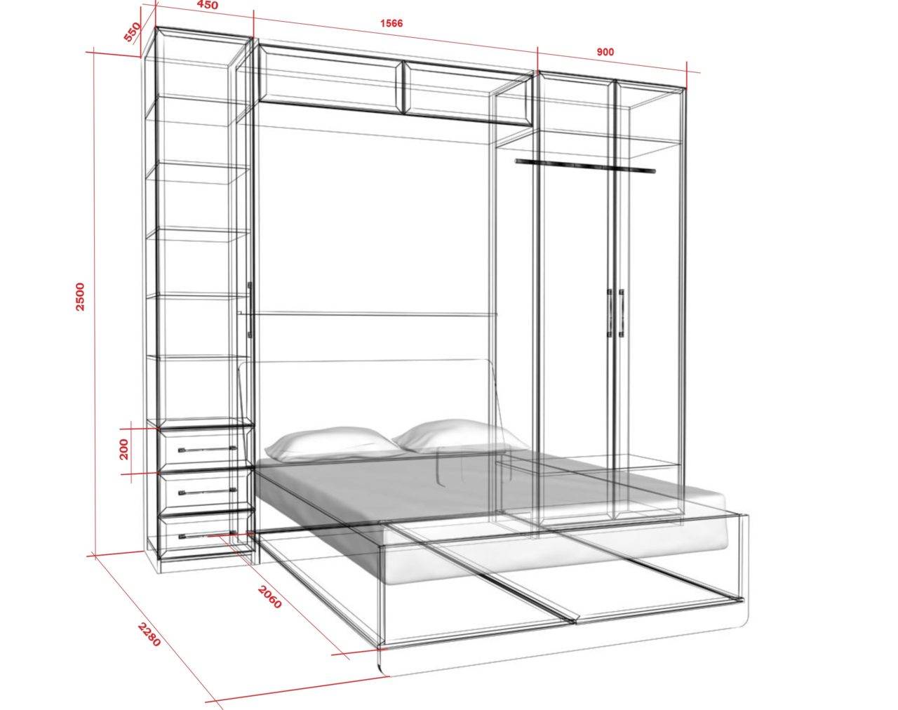 Прежде чем идти в магазин, следует тщательно измерить помещение, где будет устанавливаться мебель – ширину стен комнаты, параметры площадки, предназначенной для размещения встроенной кровати, начертить план установки шкафа, куда будет монтироваться спальное место.