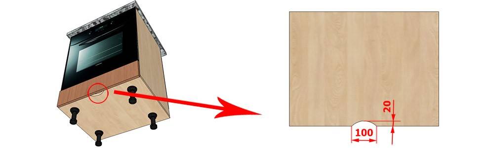 Не все знают, что в варочных панелях существует система охлаждения, она расположена снизу конструкции. Через этот зазор циркулирует необходимый поток. Воздух заходит через расстояние между цоколем и дном тумбы, огибает по заду шкаф и выходит сверху.
