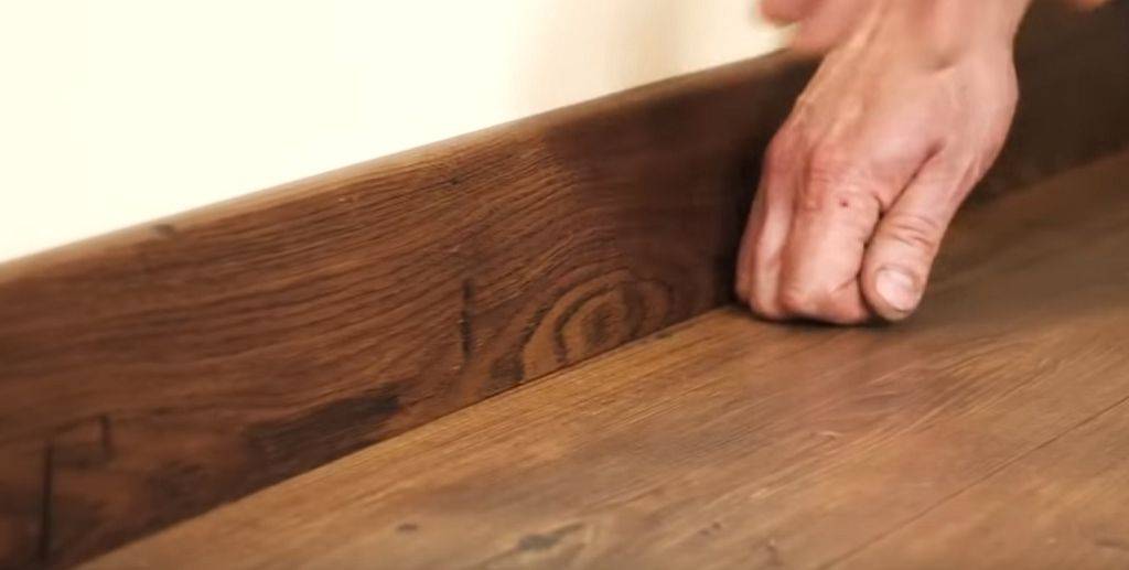 Шаг 12. После монтажа ламината устанавливается плинтус.