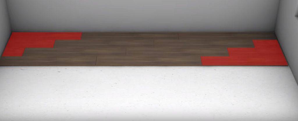 по факту получается равное смещение на разных рядах, при условии прямоугольной формы помещения. Картина пола