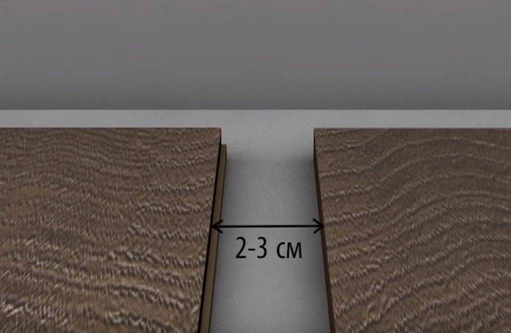При укладке панелей толщиной 0,7-1 см на пространстве размером 6х8 м местами оставляются компенсационные швы шириной 2-3 см