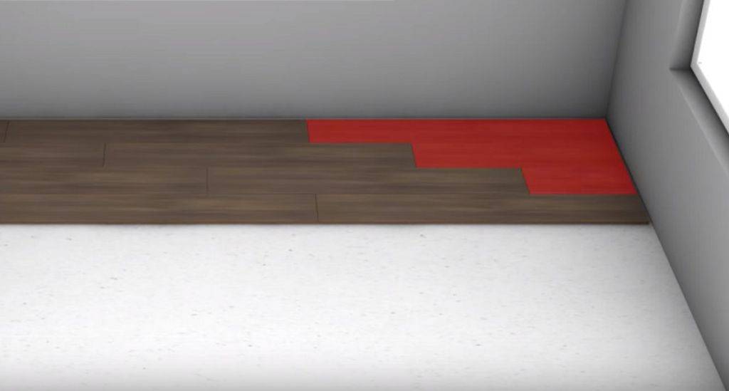 начинается с целой плашки. Картина напольного покрытия получается в виде “лесенки”. Обычно более экономичный вариант