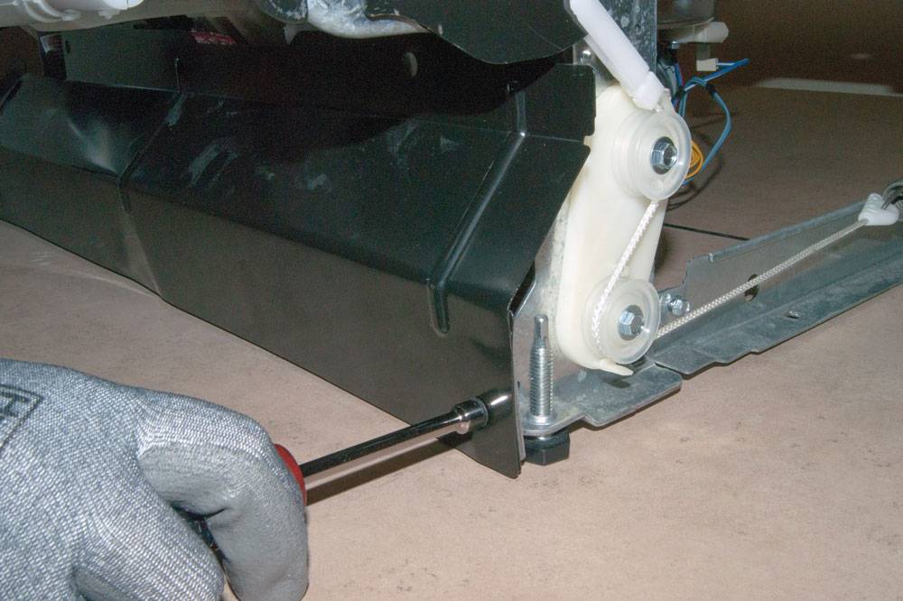 - Демонтируйте днище посудомойки. Для этого может понадобиться снять боковые панели.