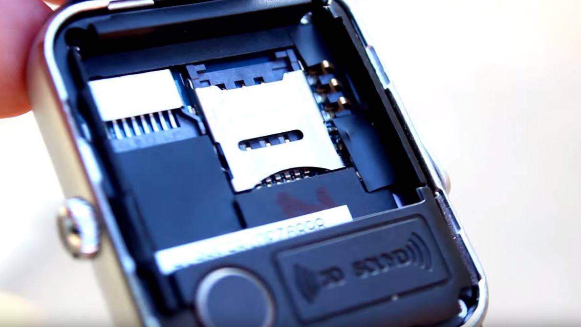 Задняя часть крышки сделана из пластика, она съемная. Здесь находятся зарядная батарея и два слота: под MicroUSB и MicroSIM. По заверению производителя часы работают с картами памяти до 32 Гб. Качество сборки изделий, по отзывам покупателей, вызывает претензии.