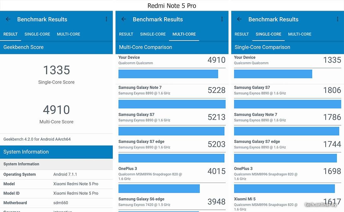 Смартфоны оборудованы одинаковыми 8-ядерными процессорами Snapdragon 636 с тактовой частотой до 1,8 ГГц. Оперативной памяти — 4 ГБ у «индийского» Redmi Note 5 Pro и 3 ГБ у «китайского» Redmi Note 5. Есть также модификация с 6 ГБ «оперативки», однако вполне достаточно и четырех.