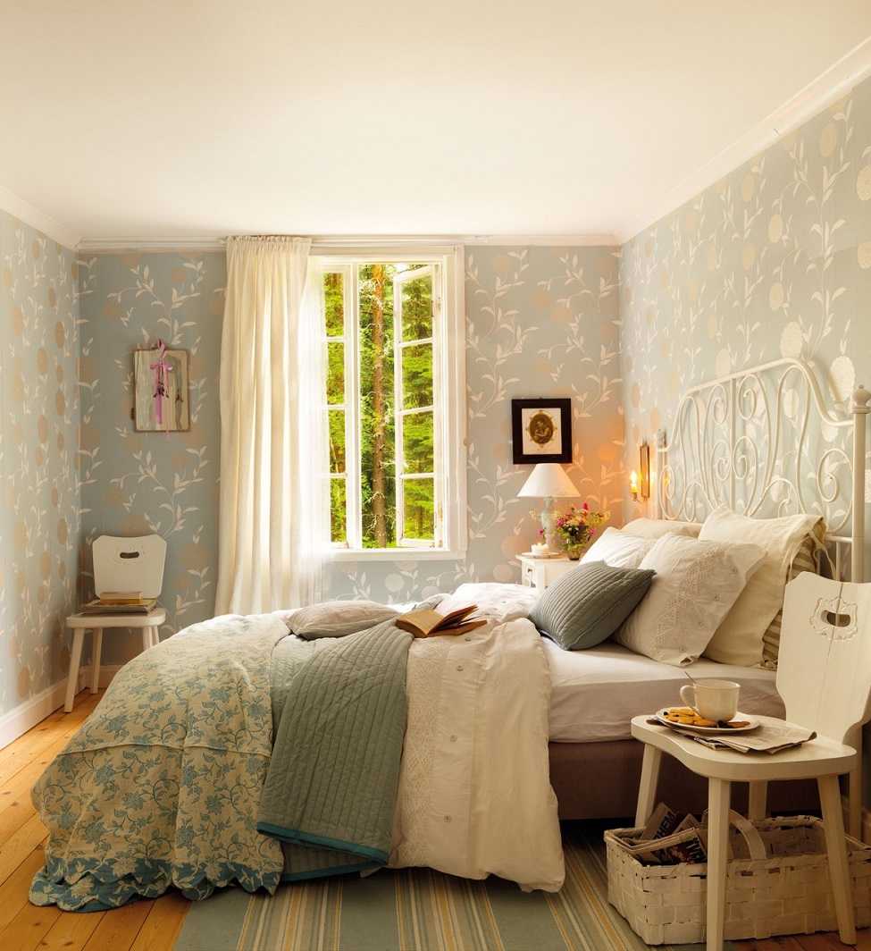 При выборе обоев для маленькой спальни лучше оформить ее в приятных для глаз ненавязчивых цветах и рисунках, способствующих расслаблению и спокойному сну.