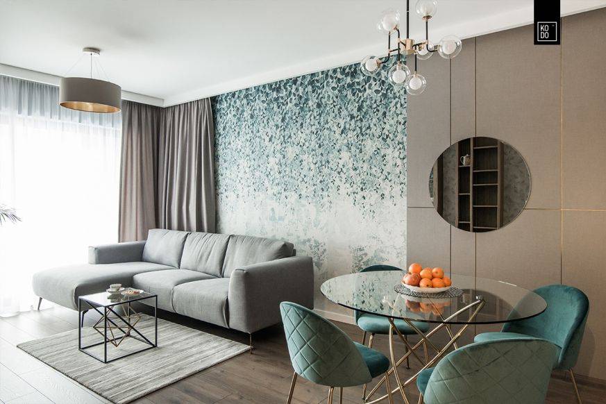 - Фреска (фотообои), геометрический рисунок и однотонные;