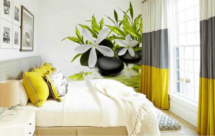 Учитывая, что фотообои – достаточно активный декор, а иногда и доминируют в помещении, они должны гармонировать с основной отделкой стен. Обилие цветных принтов и узоров не должно «давить на глаза». Лучше всего сочетать насыщенные оттенки с нежными пастельными. Оригинально также выглядят фото в модульных рамах.