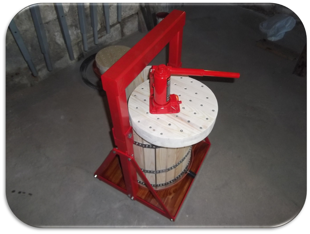 Подготовленная кашица упаковывалась в марлю и ставилась под пресс в кадку из дерева. Чтобы собрать яблочный сок в емкость, для стока жидкости в нижней части устройства конструкцией предусматривалось отверстие. Роль пресса могли выполнять тяжелые предметы (камни).