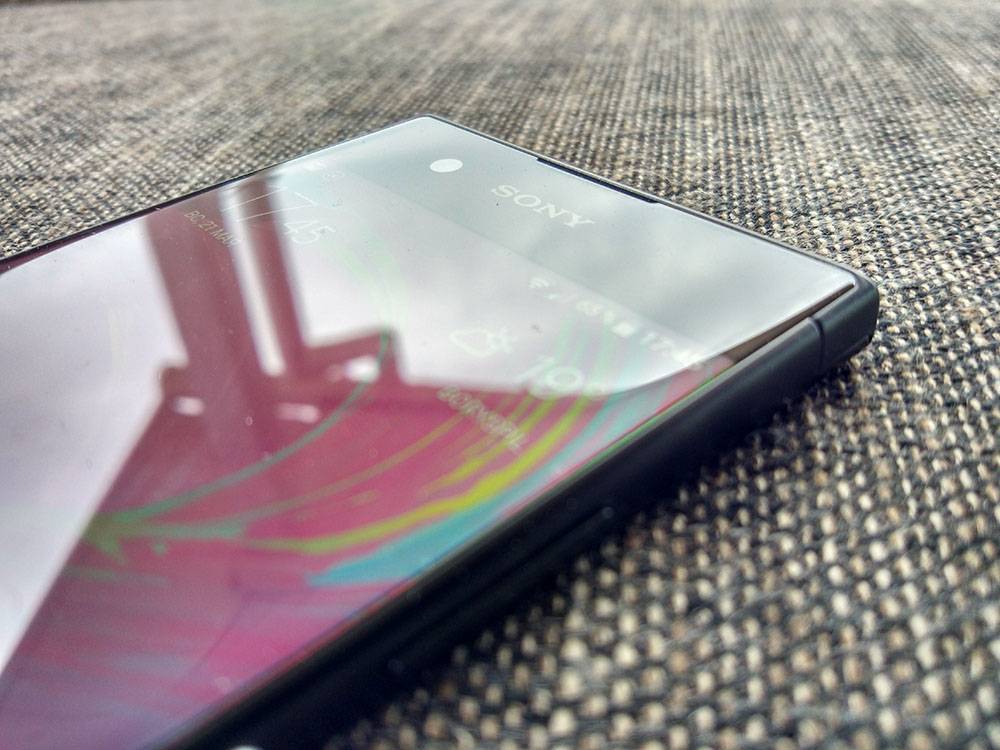 Над экраном расположился логотип Sony, справа от него — датчик освещённости и приближения, слева — объектив фронтальной камеры. Там же можно найти индикатор оповещений, но в нерабочем состоянии он практически незаметен. На верхнем и нижнем краях расположились разговорный динамик и микрофон. Решение определенно эффектное, но не совсем практичное. В отверстиях постоянно скапливается пыль и чистить их приходится часто.