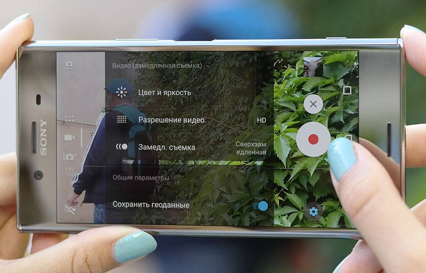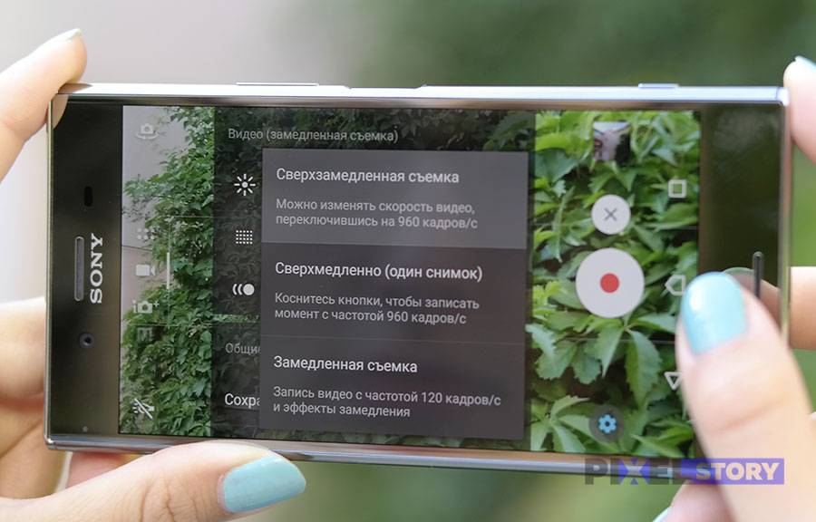 Кроме обычного режима съемки видео в разном разрешении и разной частотой кадров разработчики Sony Mobile добавили новую кнопку над спуском затвора. Нажав на нее мы попадаем в режим замедленной съемки.