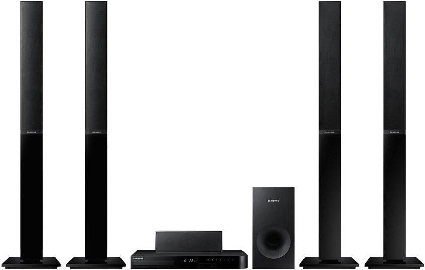Несмотря на то, что средняя мощность этой модели несколько ниже показателя в 500 Вт, этого вполне достаточно, чтобы обеспечить хорошее звучание в комнате среднего размера. Домашний кинотеатр отличается стильным дизайном, а его комплектация состоит из фронтальных и тыловых колонок, которые размещаются на полу. К плюсам такой модели можно отнести: