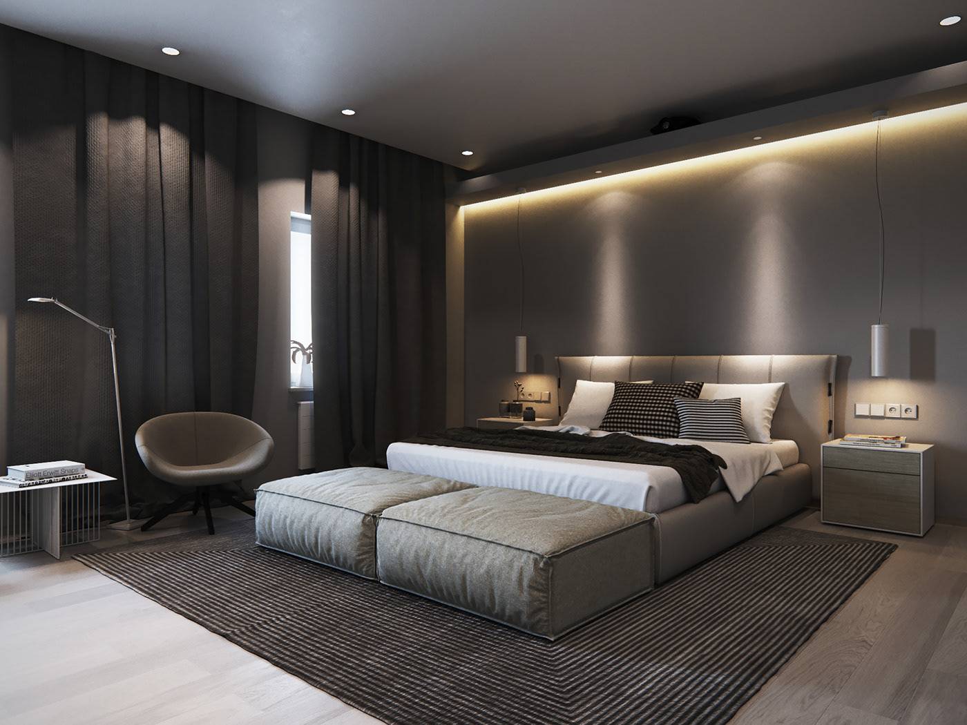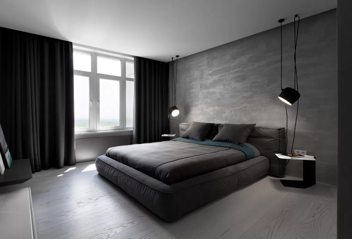 Говоря об интерьере спальни в темных тонах, стоит уделить внимание не только мебели, но и другим элементам интерьера полам, мебель, аксессуарам и текстилю