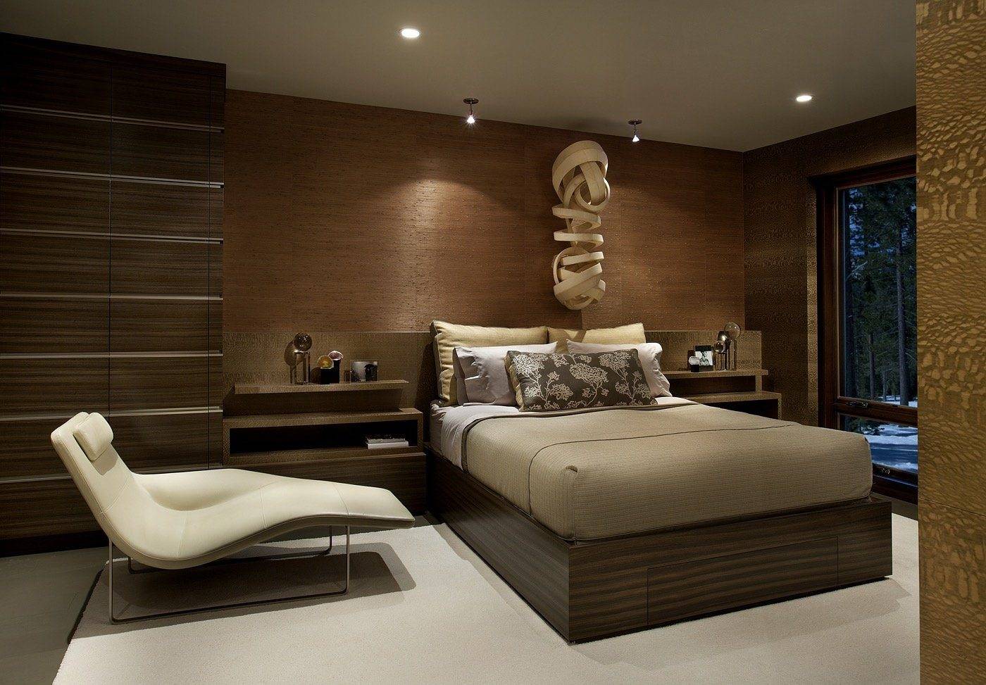 На фото сочетание шоколадных и бежевых цветов в интерьере спальной комнаты.