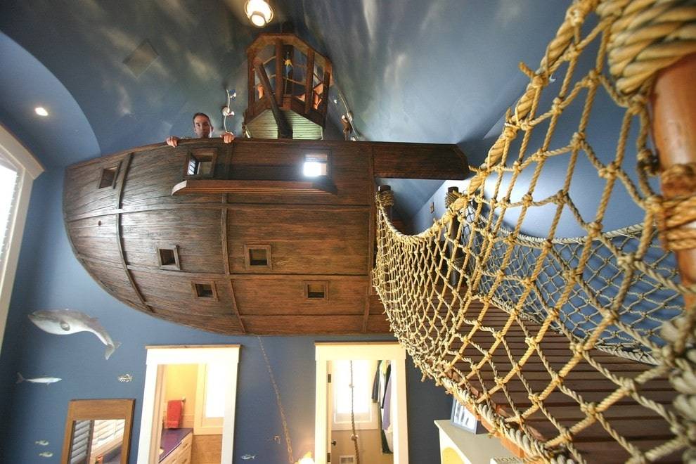 Например, можно превратить спальню в корабельную каюту или палубу и оформить комнату так, чтобы она стала похожа на корабль. Не бойтесь давать волю фантазии.