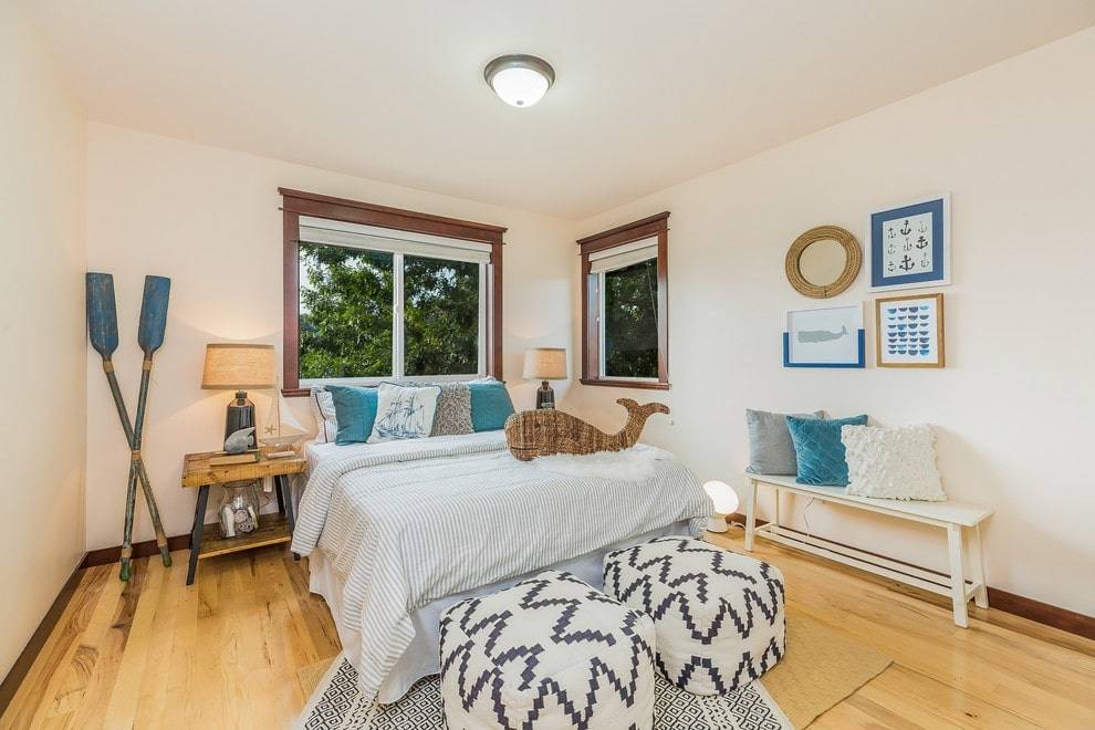 Ваша спальня, декорированная на морскую тематику, может выглядеть традиционно или более современно (сегодня очень популярен морской дизайн с минималистическим уклоном).